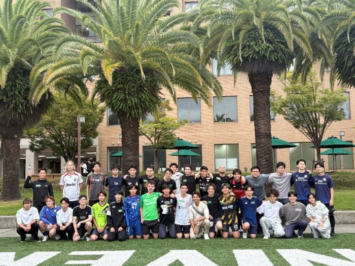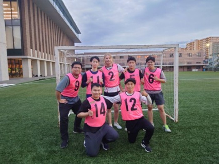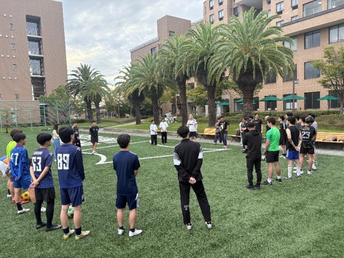 今回は、初めての試みとして関西外語専門学校の学生の皆さんをお招きし、サッカーを通じた交流イベントを開催しました。阪南大学からは国際交流サークルICEのメンバーやサッカー部の学生が参加しました。