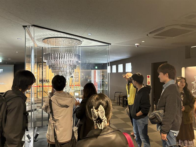 あべのハルカスキャンパスで自己紹介とアイスブレイクを行い、交流を深めた後、阪堺電車に乗って住吉大社へ移動しました。天候にも恵まれ、紅葉が美しい住吉大社で参拝をしました。続いて、堺伝統産業会館で刃物の歴史を学び、さらにシマノ自転車博物館で自転車の歴史について見学しました。