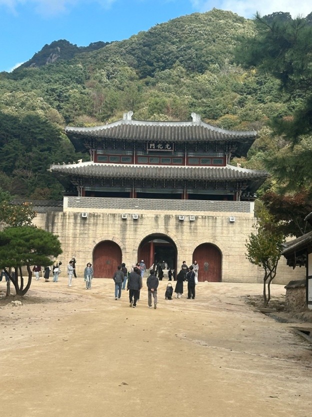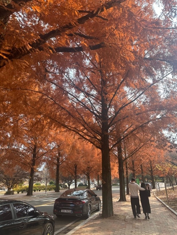 10月に入り韓国は一気に寒くなり、紅葉が進むキャンパスで秋を感じながら過ごしました。語学堂の現場学習ではムンギョンの撮影地を訪れ、壮大なセットや自然を楽しみました。11月になると大学はクリスマスの雰囲気に包まれ、休みには祖父と母がソウルを訪問しに来ました。より本格的な撮影地にも行き、紅葉と歴史的建物がつくる非日常の空間を満喫しました。祖父に韓国語を褒められ、自分の成長も実感しました。
