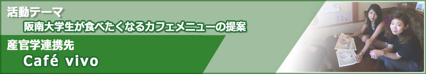 私たちのゼミでは、大学の近くにあるカフェVivoと連携して、阪南大学生が食べたくなるカフェメニューの提案というテーマでキャリアゼミの活動を行っています。