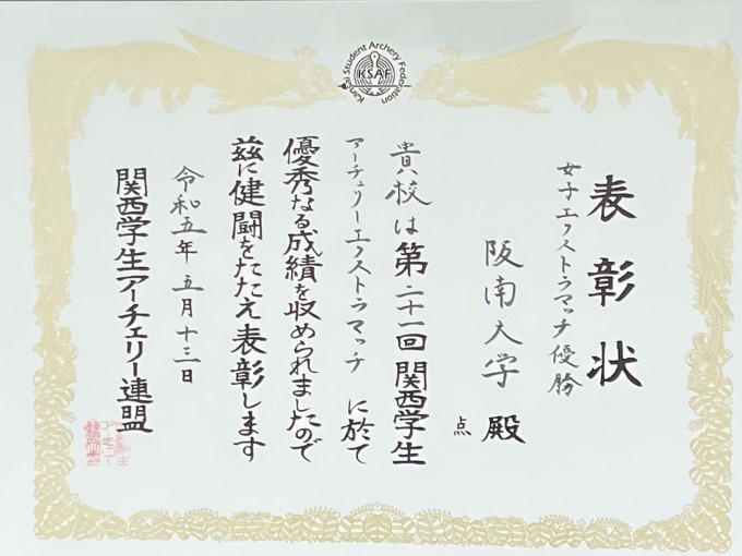 試合は全て阪南大学洋弓場で行われ、阪南大学の女子チームが優勝しました。