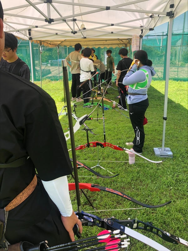 阪南大学洋弓部からは、3年生2名、2年生1名、副顧問の3名で試合に臨みました。