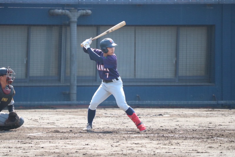 4回表、1死から本日打順を1つ下げた大倉天快(橿原学院④)が初級のカーブを狙い撃ち!打球は、レフトスタンド上段に消える確信の本塁打となる。2—1。