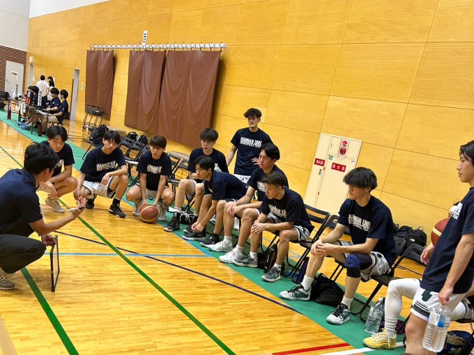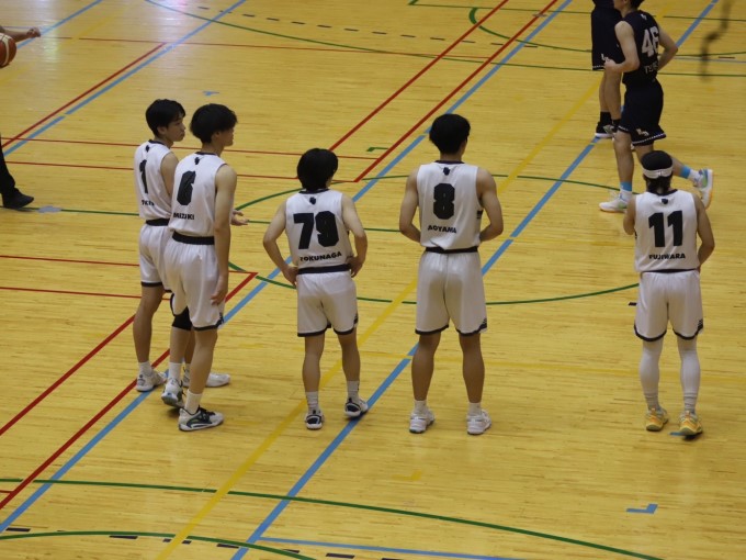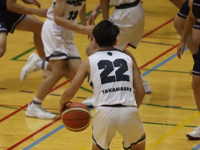 第2クォーターは、甲南大学#67と#7に連続スリーポイントを許してしまい点差が開いてしまう一方でしたが、なんとか相手の得点を止めようと、ハードにディフェンスをしていき、私達も追いかける形で得点を重ねていき粘っていきました。第2クォーター終わりで、26対37と11点リードを奪われる形になりましたが、この点差をどうにか第3クォーターで巻き返したいと後半に向けて準備をしました。