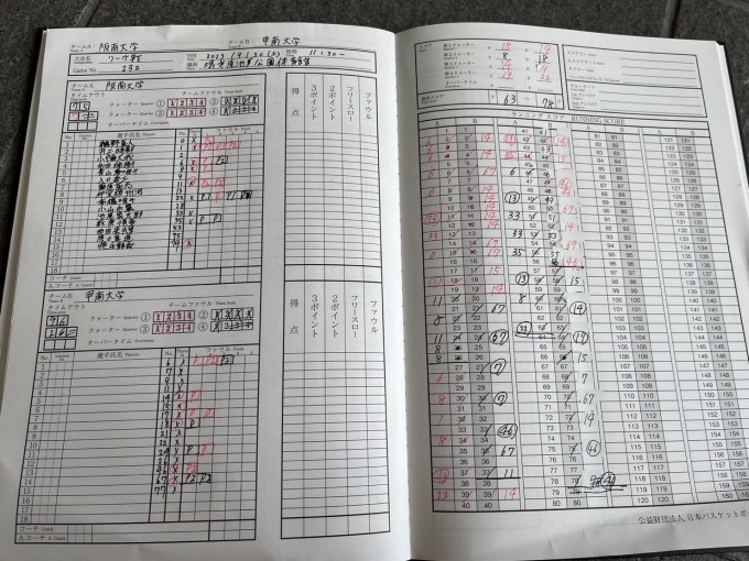 第1クォーターから、お互いの攻防が激しくなり、一進一退の展開が続く中、我がチームの#6永田が先制点から8連続得点と点数を重ねていくが、相手の攻撃を守りきれずに、甲南大学#14に連続得点をされてしまいました。第1クォーターは18対19と甲南大学に1点リードされる形となりましたが、チームの流れとしては、良い傾向に向かっていきました。