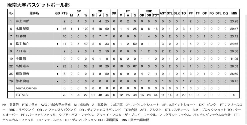悪かった点は、阪南の大きな課題であるリバウンドが、試合が進んでいくにつれ、疎かになっていました。しかし、まだリーグ戦は続くのでこの課題を意識しつつ次の試合へ生かしていきたいと思います。
