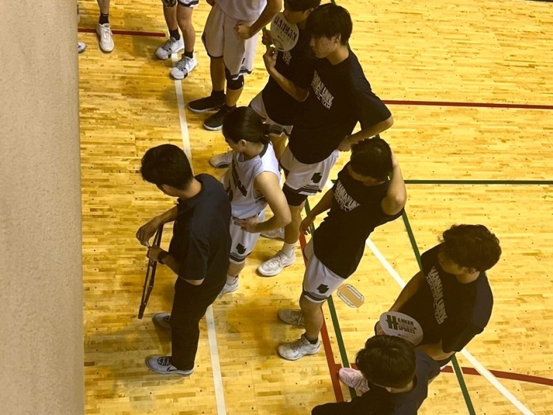 第1クォーター、#22高橋、#35萩原の3ポイントで点数を重ねていきました。しかし、相手の合わせのプレーや3ポイントで点数を決められ、21対25で相手にリードを許してしまいました。第2クォーター、#22高橋、#35萩原を中心に点数を重ねていきましたが、相手チームの勢いを止めることが出来ず、41対52で前半が終了しました。