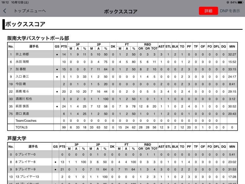 芦屋大学戦(10月12日)