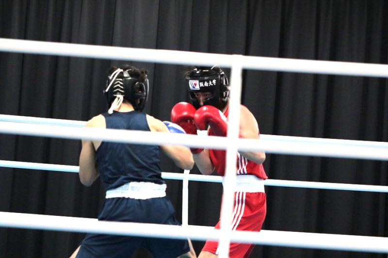 バンタム級 細川 世成選手(赤コーナー 国際学部国際コミュニケーション学科2回生)VS近畿大学の選手(青コーナー)