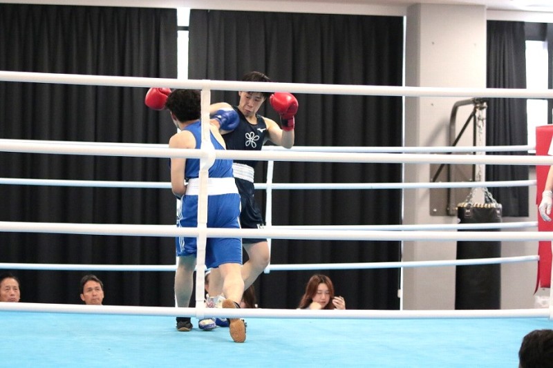 第二ラウンドに入ると試合決着は早々につきました。第二ラウンドも今村選手はストレートを中心に果敢に攻めて行きました。しかし開始1分経過後に相手選手との相打ちのパンチで相手選手はクリンチの末、肩を外してしまい、ドクターから試合続行の許可が降りずに今村選手は負傷勝利の結果になりました。この勝利は、今村選手の普段の練習と運が味方した結果だと思います。今後ともボクシング部の応援をお願いします。