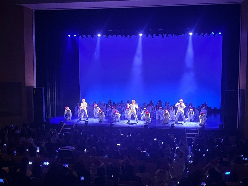 2024年12月22日、4回目となるダンス部の自主公演を行いました。公演のタイトルでもある「BLUE KNOT」は希望や貴重という意味を持つBLUEに、縁を代々繋いでいくという意味を持つKNOTを合わせ、これまでの楽しかったことや大変だったこと、全ての経験や想いを私たちの結び目であるダンスで表現し、1つの公演を作り上げ、これからに繋げていこうという意味が込めました。今年は1部にジャンル作品、2部に小作品と学年作品、そして3部には1つの物語をダンスで表現した大衆作品を披露させていただきました。ぶつかることや上手くいかないこともありましたが、部員1人1人が様々な想いを込めて練習を重ね、本番の日を迎えました。パフォーマンスを通して私たちが込める想いやダンスの楽しさを伝えられたのではないかと思っています。