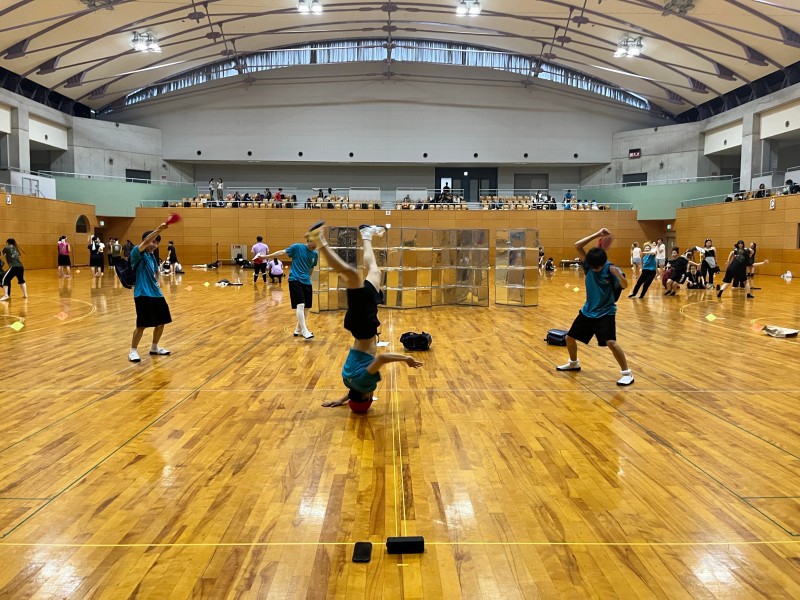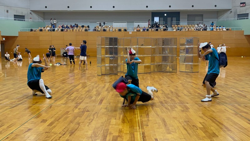 今年も阪南大学ダンス部からは、ブレイキンを含めた2チームが参加しパフォーマンスを披露しました。今年のブレイキンのテーマは「小学生」で創作しました。若さとエネルギーに満ちたダンスが特徴で、直接先生にアドバイスをいただきながら小学生らしい無邪気で元気な姿を表現を追求し、個性溢れる良い作品が創作できたと思います。また、テーマに対するイメージをメンバーと共有し合い、遊び心のある動きをダンスに取り入れ、顔の表情を変えるなど練習し、本番に挑みました。舞台に立ち披露した際に審査員からユーモアの評価もいただき、私たちもとても楽しく踊りきることができました。