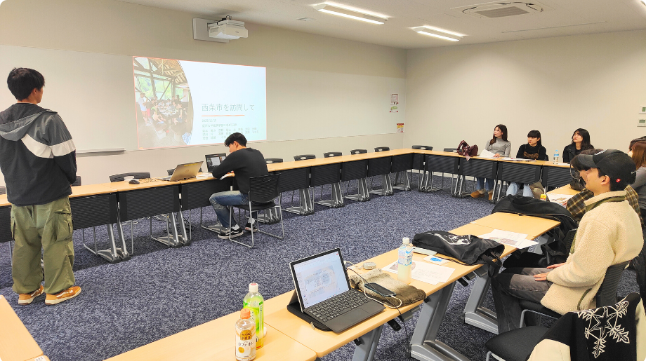 今回の最終報告会では、学生たちが西条市でのフィールドワークを通して得た気づきを、自分たちの言葉で丁寧にまとめ上げる姿が印象的でした。