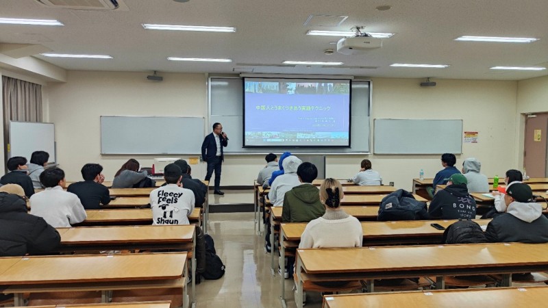 2025年12月15日(月)、経済学部「グローバル・ビジネス論b」(三木担当)は、ASIA-NET代表、株式会社クロスコスモス代表取締役、TCA東京事務所駐日代表の吉村 章 様をお招きし「中国人とうまくつきあう実践テクニック」という演題でご講演をいただきました。
