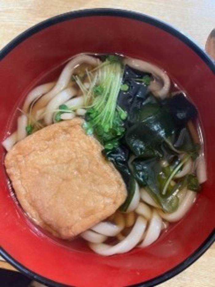 また、セットにはうどんも付いており、甘めの出汁がやさしく、寿司と合わせて満足感を引き立てます。大きなワカメが二つ載っていて、こちらもすごく食べ応えがありました。