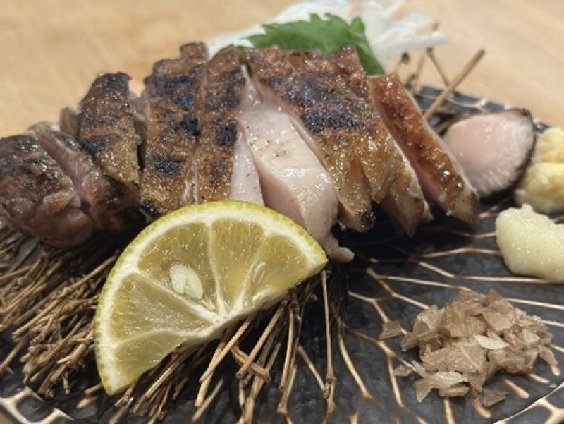 次は 「若鳥もも肉の炙り焼き」。"炭火焼きにハズレはない。"その言葉を証明するような一皿。何も考えずに箸が止まらなくなるタイプの料理です。プリっとした食感に、しっかりした味付けで、次へ次へと手が伸びてしまいます。