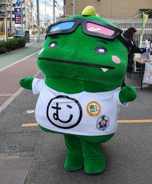 泉大津野外映画祭実行委員会のマスコットキャラクターである「むびお」も来て、共に映画祭を盛り上げてくれました。今度ははぴなんとの共演を約束しました。