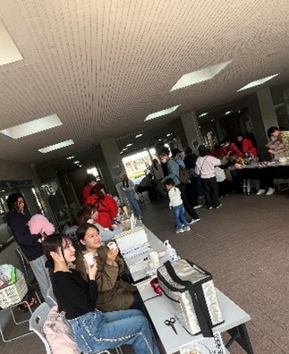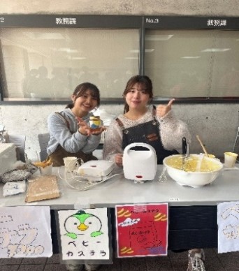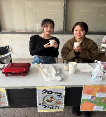 中西ゼミはベビーカステラ、クロッフルの販売と古着の無料配布を行いました。