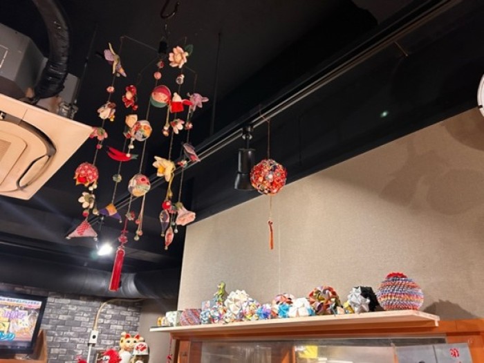電話予約の時から店主のお母さんがすごく穏やかな雰囲気で出迎えてくれました!折り紙オブジェや吊るし鞠が飾ってあり、和風な店内が落ち着きます。おばあちゃん家のように感じて、思わず長居したくなる、どこか懐かしい空間です。すみっこに招き猫があって、これまたほっこり。