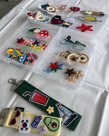 ワッペンキーホルダー作りは、韓国合宿でリサーチしたお店で体験しました。とても楽しく、みんなにも体験してほしいという気持ちから行いました。イベントが始まると、多くの子供たちが来てくれました。子供たちは自分の好きな色のキーホルダーとワッペンを選び、楽しそうな笑みをこぼしていました。時間制限はありましたが、ワッペンキーホルダー作りの楽しさを共有できました。
