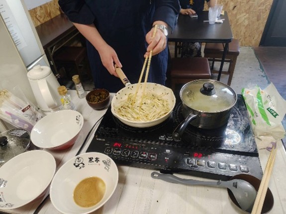印象的だったのは、ブラジル人のご主人と日本人の奥様のご夫婦です。ラーメンを「美味しい」と言っていただき、海外の方にも楽しんでいただけたことが印象に残っています。結果は、目標としていた31杯を完売することができました。完売後にも「ラーメンまだありますか?」と来てくださるお客様もおり、多くの方に関心を持っていただけたことを嬉しく思います。また今回は、瀬野先生にもご参加いただいたことで、いつもよりスムーズに販売を行うことができました。
