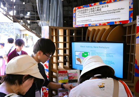 万博のフィールドワークにて、吉野の割り箸の魅力を伝えるため、積極的にお客様への声かけを実施しました。