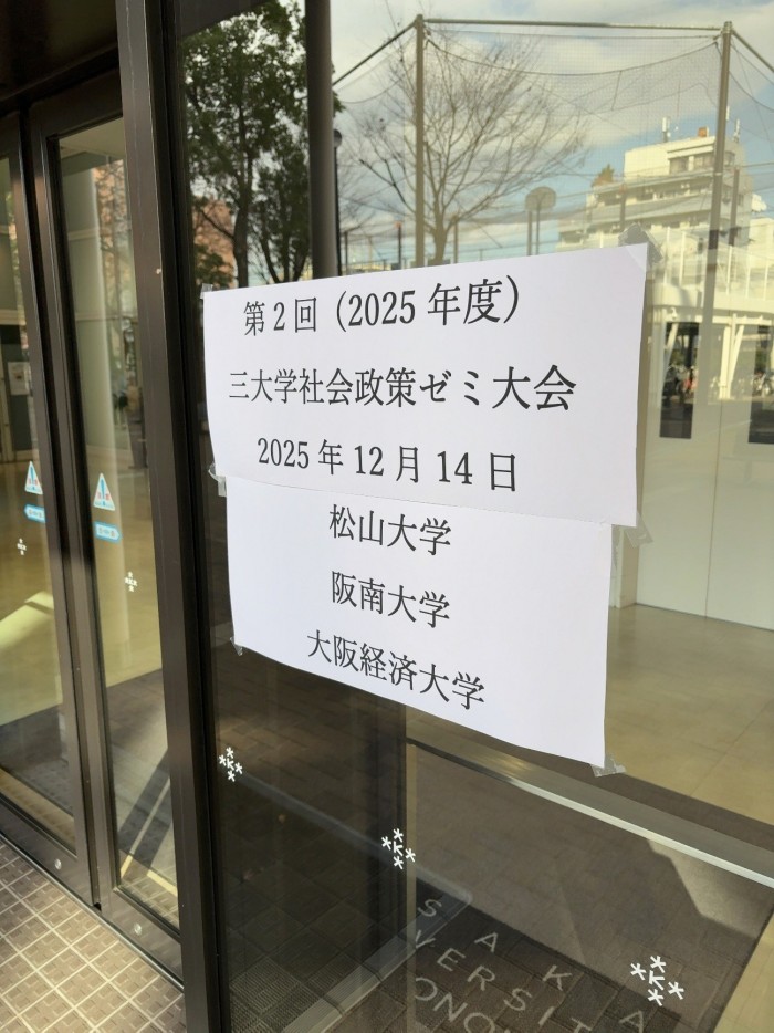 経済学部・瀬野ゼミでは、大阪経済大学・森詩恵ゼミと、松山大学・西村健ゼミとの「社会政策ゼミナール大会」を2025年12月14日(日)に開催しました。