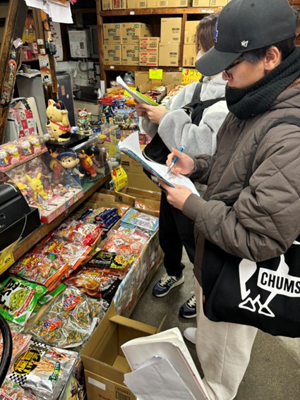経済学部豆本ゼミでは、例年フィールドワークを中心に据えたゼミ活動を行っており、3年生のゼミでは学生自身で研究テーマを決めて企業等に訪問を行っています。今回私たちは駄菓子の仕入れ状況について調査を行いました。
