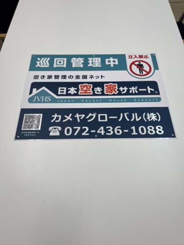 現在、同社では海外赴任等で空き家となった家を2件管理しており、看板を建てて管理物件であることを周知し防犯対策としています。また、海外から(空き家に)荷物を送りたいときに、同社に荷物を送れば見回り時に荷物を届けておいてくれるサービスも行っていいます。