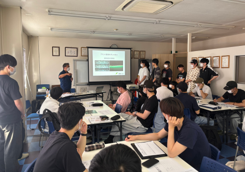 初めに会社の駐車場に集合したのち、二階の会議室に移動し、グループごとに着席し出席を取りました。その後フィールドワークをするにあたっての説明や当日の流れや藤原社長からの自己紹介の後、工場見学をさせていただきました。工場見学では、藤原電子工業さんがどのような機械を使って製品を作っているのかや、働きやすい環境づくりのためにどのようなことをしているのかについて教えていただきました。その後会議室に戻り、より詳しく会社についての説明を聞きました。