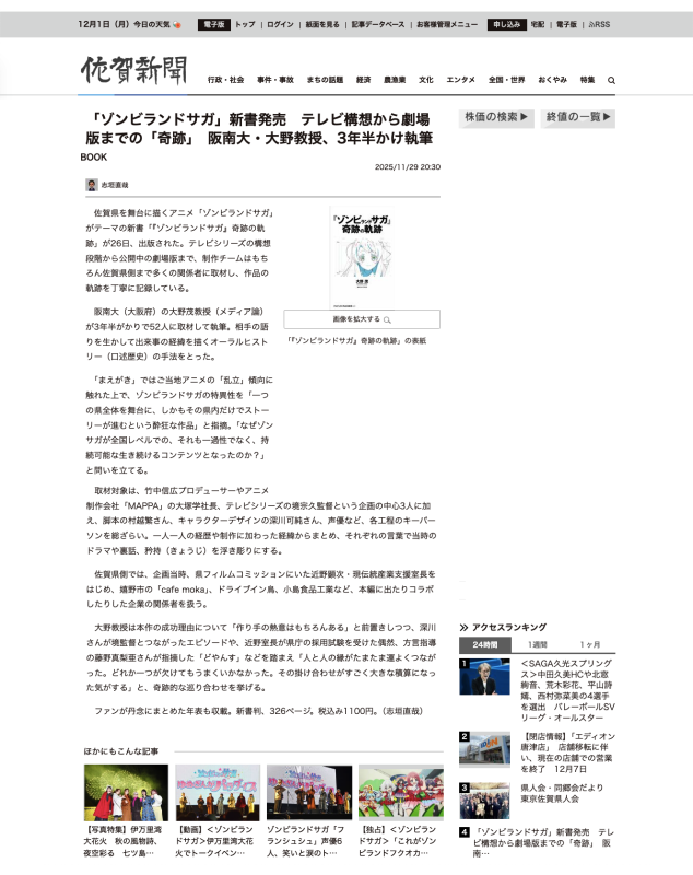 〝ご当地もの〟が乱立し、死屍累々となった中から、なぜ『ゾンサガ』だけが全国レベルでの、それも一過性でなく、2025年には劇場版公開に至るという持続可能なコンテンツとなったのか?徹底した現場取材と関係者のインタビューを踏まえて説く!」