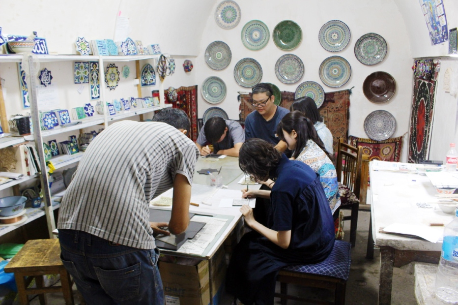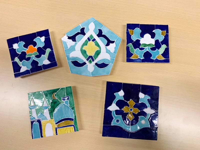 2024年9月に実施したウズベキスタン研修の続報です。サマルカンド・レギスタン広場内のタイル工房で制作したタイルが到着しました!タイル工房では、普段、職人たちが模様・彩色豊かなタイルを作っています。今回は、職人のイクロムさんにタイル作り体験をお願いしていました。