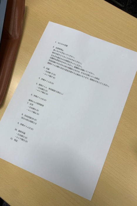 当日は、審判チームにより綿密に練られた進行の下、議論をスムーズに進めることができました。日本チームからは、現況のベースとなっているヤルタ会談の不当性やソ連による北方領土占領の違法性が提起され、ロシアチームからは「千島列島」の定義や北方領土の歴史、現在の様子について触れられるなど、幅広い主張が行われ議論は白熱しました。結果は、紙一重で日本チームの勝利となりました。