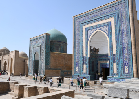 3日目・4日目はサマルカンドへ行きました。そこでは、さまざまな遺跡を見ました。最も印象に残ったのはレギスタン広場です。写真や映像で見るよりも圧倒的に美しく、20年生きてきた中で最高の景色でした。五感で感動を味わいました。