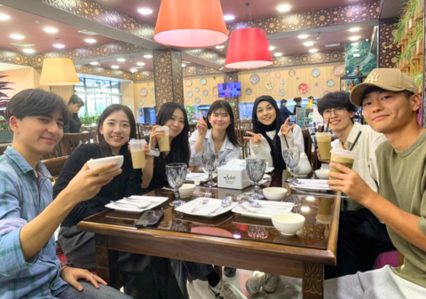 今回の研修で特に心に残っているのは、ウズベキスタン日本センター(UJC)の学生たちとの交流会です。私は人見知りということもあり、初めは緊張してうまく会話できるか不安でした。しかし、アニメや日本の音楽の話などを通して、学生の皆さんが一生懸命勉強した日本語で話しかけてくださり、とても和やかな雰囲気で交流することができました。交流後には、UJCの学生とSNSを交換したり会話を続けたりと、交流会を通して多くの人と良い関係を築くことができました。後日、UJCの学生数人とプライベートで食事に行ったり、バザールやショッピングモールで買い物をしたり、タシケントにある猫カフェや遊園地のような煌びやかなパークにも行きました。接客や注文の場面でウズベク語やロシア語が分からないときも、UJCの皆さんが単語やフレーズを教えてくれたおかげで、覚えたロシア語を使って一人で注文できるようになりました。