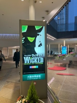 阪南大学国際学部国際コミュニケーション学科では実体験を通し異文化にふれ、日々の研鑽を深めることを目的とした体験学習を毎年、開催しています。2024年度は劇団四季の『ウィキッド』の鑑賞会を開催しました。当日、学生たちは梅田の大阪四季劇場に集合し、夜の部を観劇しました。アメリカ児童文学の名作『オズの魔法使い』の続編とも言える本ミュージカルにどのような印象を抱いたのでしょうか。参加した学生から感想が寄せられましたので、2回に分けてご紹介します。