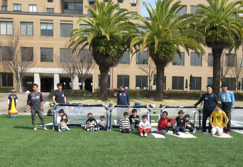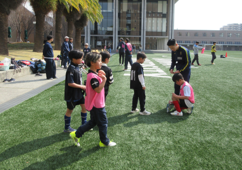 2月22日にその思いを持ってから初めてサッカー教室に参加し、進め方を見て学んだり、さまざまな話を教えていただきながら準備を進めてきました。そして、3月28日には初めて自分で考えたメニューで子どもたちにサッカーを教えることができました。