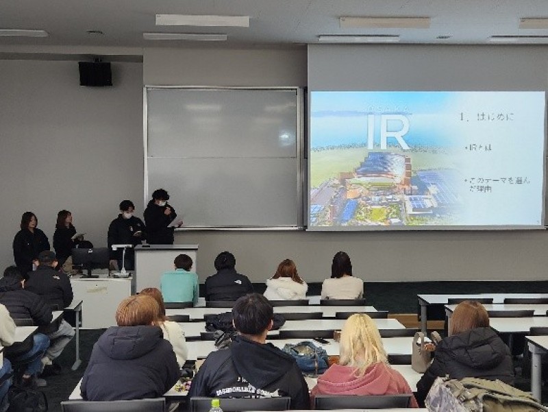 私たち福本ゼミは、1月24日(土)開催の『第11回 4学部ゼミ発表会』に参加、大阪IR(統合型リゾート)を調査対象に2つの班に分かれて発表を行いました。