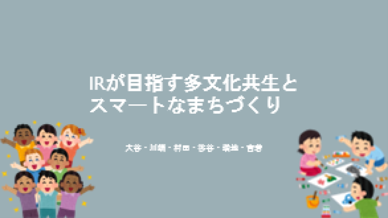 私たちは「IRが目指す多文化共生とスマートなまちづくり」をテーマに、IRの概要だけでなく、その目的や期待される効果、さらに今後の課題についても調べ、発表を行いました。IRが地域社会にどのような影響を与えるのかを多角的に考えることで、まちづくりとIRの関係性について理解を深めることができました。