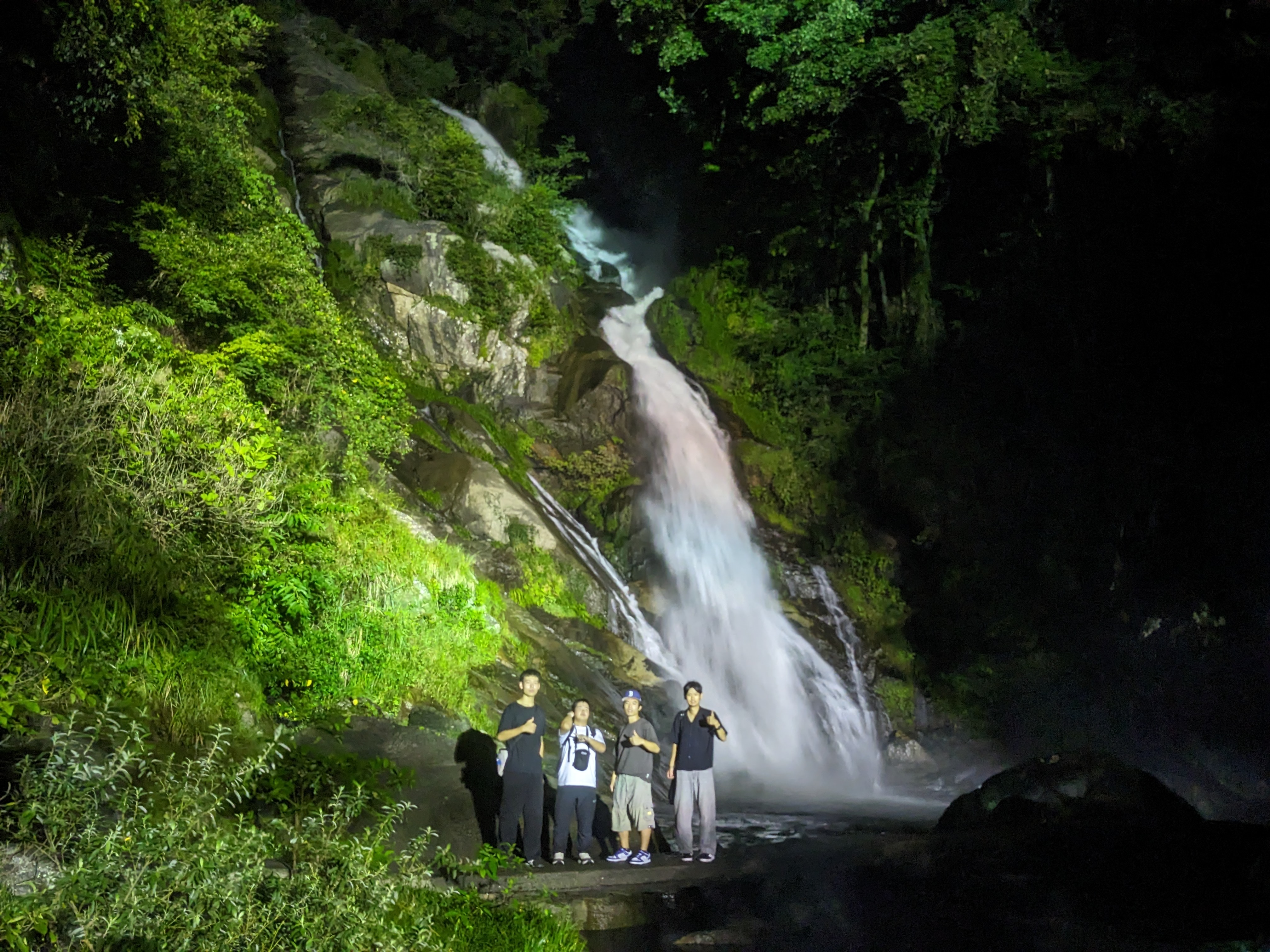 その日の夜に見帰りの滝に行きました。道中がとても暗く、本当に滝があるのかなと思うような道程でした。途中から山道を歩いて行き、滝を見つけました。観光客は1人もいませんでしたが、ライトアップされた見帰りの滝はとてもきれいでした。幻想的な雰囲気で、マイナスイオンを感じることもできました。