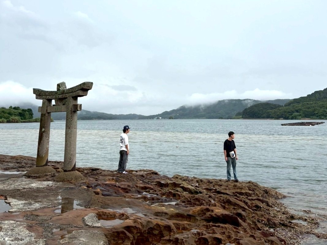 その後、和田津美神社に行きました。和田津美神社では、鳥居の前に海があるので、天候が良ければ絶景写真を撮ることができます。私たちが行った日は天候が悪かったので、映え写真を撮ることはできませんでしたが、天候が良く青空が出ているような日なら、綺麗でインスタ映えするような写真が撮れるような場所だと思いました。和田津美神社の周辺には棚田もありました。夕日の見える時間帯に行くと、夕日と棚田のセットで映え写真が撮れそうだと思いました。