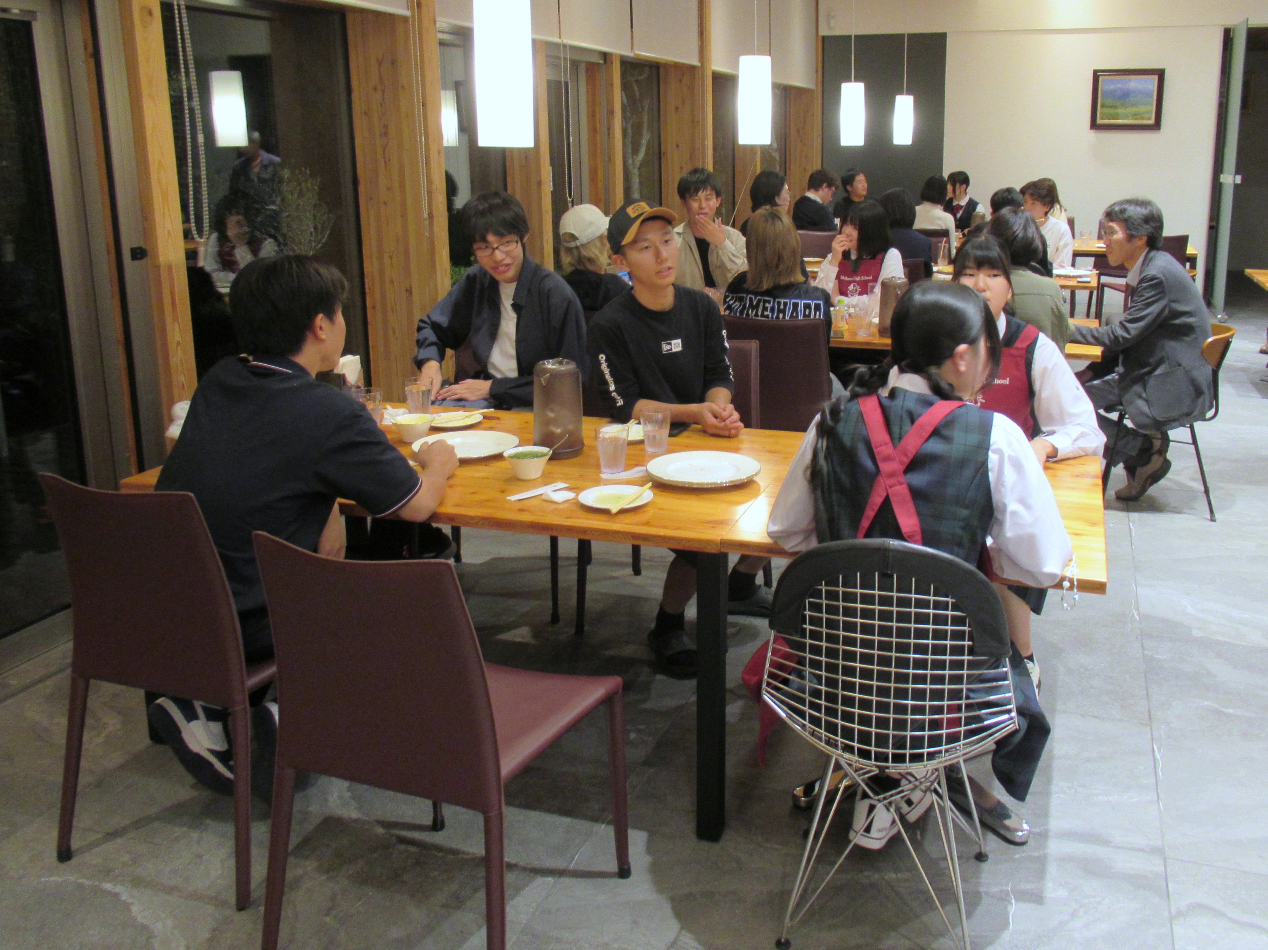 発表後には懇親会が行われ、一流シェフが朝獲れた魚を捌くところを間近で見ることができ、貴重な機会になりました。また、地元の高校生と交流することで、同世代との違いや共通点、生活の違いを知る良い機会になりました。また、地元の波心会の漁師の方々とも話すことができ、有意義な時間を過ごすことができました。