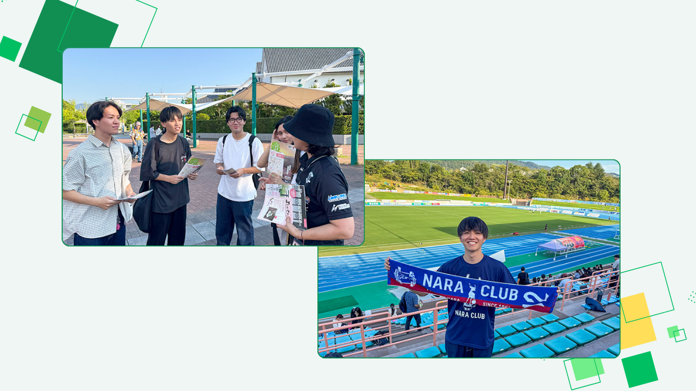 Jリーグクラブとの連携は、歴代のゼミ活動で初めての試みです。この新たな挑戦にワクワクしながら、奈良でのサッカー観戦と観光の魅力を多くの人に知っていただけるような提案を目指しています。