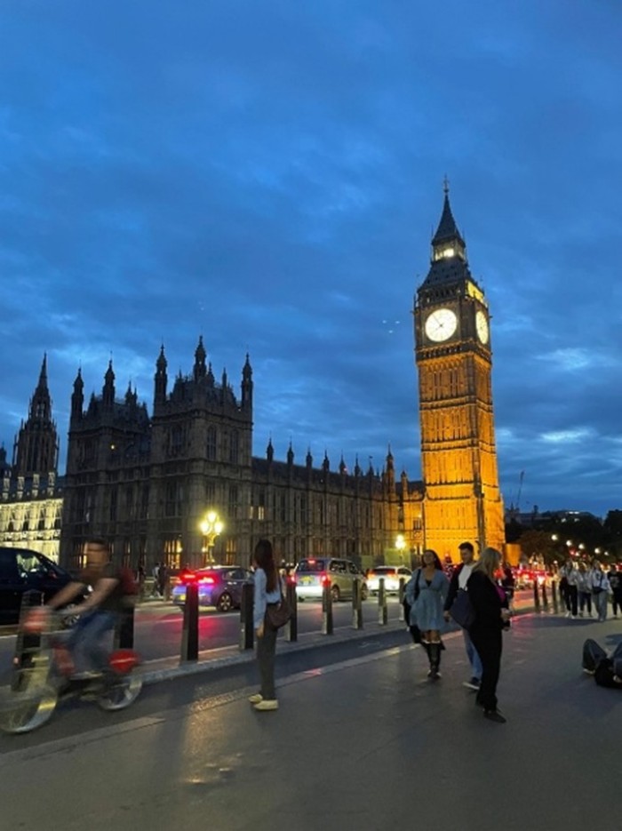 ロンドンには5日間いましたが、とても満喫できた楽しい時間でした。その中でもハイドパークやビッグベンは強く印象に残っています。ハイドパークはとても大きい都市型公園で、リスやカモを見ることができました。また、マクドナルドを買ってピクニックをしました。時間帯が夕方だったため、景色も綺麗でゆったりとした時間を過ごせました。ビッグベンにはロンドン最終日の夜に訪れたのですが、想像していた何倍も大きくて圧倒されました。時計台がとても綺麗にライトアップされていて、幻想的な雰囲気を醸し出していました。鐘の音も聴くことができ、最終日にふさわしい素敵な思い出になりました。