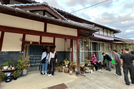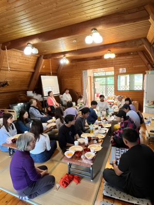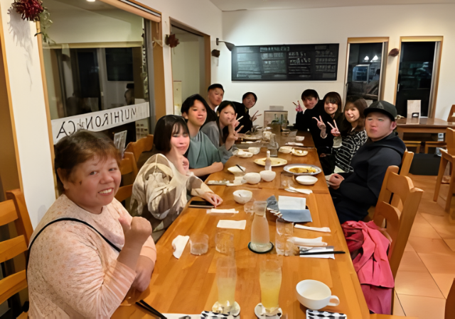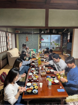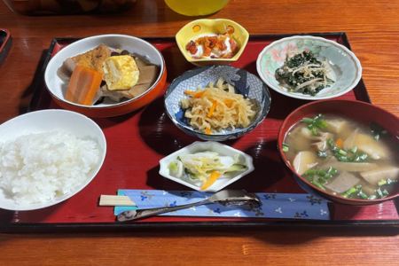 夕食には、地元のお母さんが作ってくださった手料理をいただきました。特に「だご汁」は、団子や野菜がたっぷり入った郷土料理で、とても美味しかったです。大阪ではなかなか食べる機会がない料理で、地域に受け継がれてきた食文化を実際に味わえたことがとても新鮮でした。