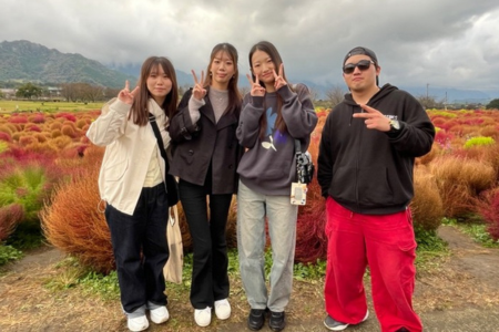 3日目は、阿蘇山を登る予定でしたが、雨が降っていたため、阿蘇山の登山道や火口までは行けませんでした。しかし、昼食を食べていたら雨が落ち着いてきたため、展望台から大パノラマの眺望を見ることができました。曇っていたのですが、街並みを眺めることができてリラックスできました。その後は、上色見熊野坐神社や道の駅 あそ望の郷くぎのを訪れました。この日は雨が降っていたのですが、雨の日独特の神社の雰囲気が神秘的でした。道の駅では、コキアの花がとても綺麗で、友達と写真をたくさん撮りました。