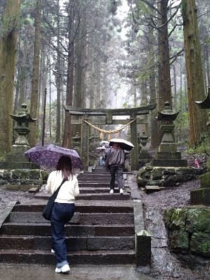 三日目は天気に恵まれず、熊本の名所を巡る予定でしたが、阿蘇山は霧でよく見えず、残念でした。上色見熊野坐神社では大雨にあいましたが、神社と雨が逆に良い雰囲気となり、神秘的で映画の世界のようで楽しかったです。途中の道の駅で土産も買えました。また、帰りの熊本空港で大阪の芸人にも会えたことは、良い思い出になりました。