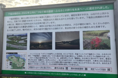 棚田の近くの道の途中には看板が設置されており、そこには案内してくださった井澤さんが撮影した写真が掲載されていました。このことから、夕日を撮影した井澤さんの写真のように、地域の方の視点を参加者と共有できる点も、フットパスならではの魅力だと感じました。