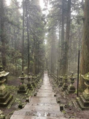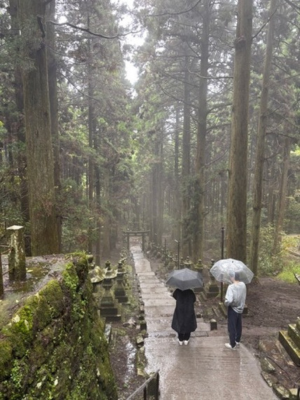三日目は、通潤橋と上色見熊野坐神社を訪れました。あいにくの雨でしたが、通潤橋の壮大な姿は圧倒的であり、人々の知恵と技術が詰まった地域の象徴であることを改めて感じました。橋の周囲にも水害の痕跡が残っており、地域の人々が安全を確保しながら観光と保全を両立させようとする姿勢が印象的でした。その後に訪れた上色見熊野坐神社では、神秘的な森の中に佇む鳥居と石段が、地域の信仰と自然との深い結びつきを物語っていました。雨に濡れた参道を歩くことで、自然の厳しさと美しさ、そして人々が自然に寄り添いながら生きてきた歴史を感じ取りました。