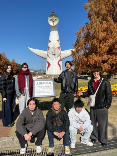 11月30日に千里万博記念公園と国立民族学博物館においてゼミでフィールドワークを行いました。新しいゼミになってから初めて全員でのフィールドワークだったので、とても楽しみでした。天王寺駅に全員で集合し目的地まで移動しました。千里万博記念公園と国立民族学博物館の最寄り駅である、大阪モノレール「万博記念公園駅」に向かいました。ここで初めてモノレールに乗ることができました。普通の電車よりも少し速いと感じました。万博記念公園駅に着いてからは歩いて万博記念公園に向かいました。そしてすぐに「太陽の塔」が見えてきました。太陽の塔はテレビや写真などで見たことがありましたが、実際に見たことがなくてとても貴重な体験をすることができました。万博記念公園で昼食を食べました。事前に各々コンビニで買ったものを持参して紅葉を眺めながら食べました。普段よりも倍以上おいしく感じました。